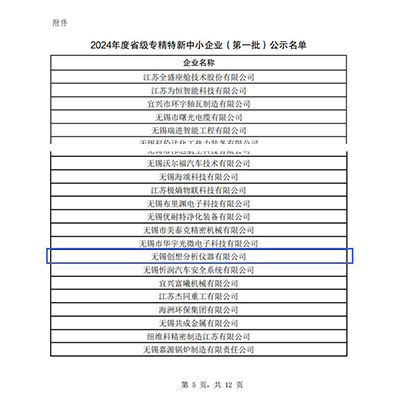無(wú)錫創(chuàng)想分析儀器有限公司榮膺2024年度省級(jí)專精特新企業(yè)